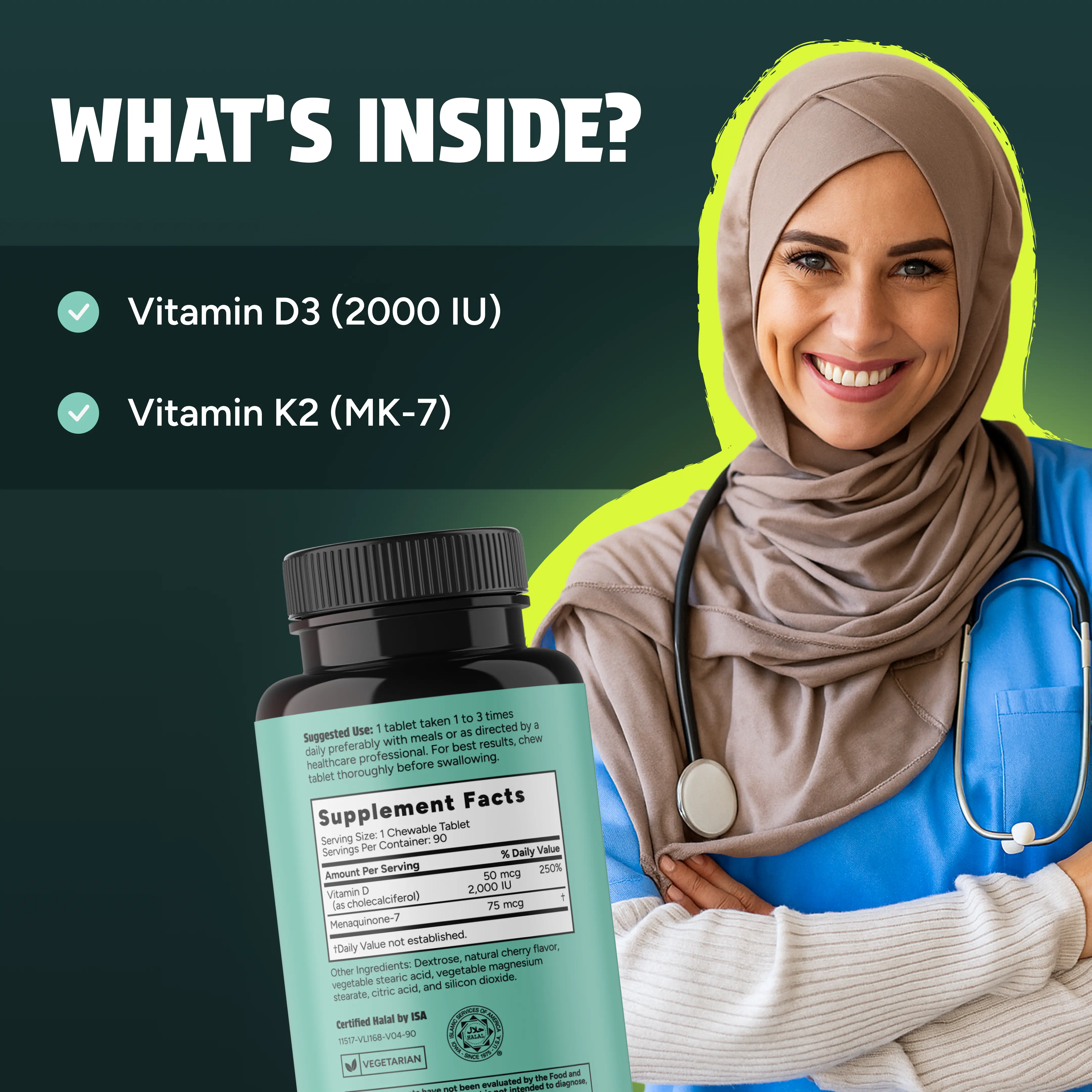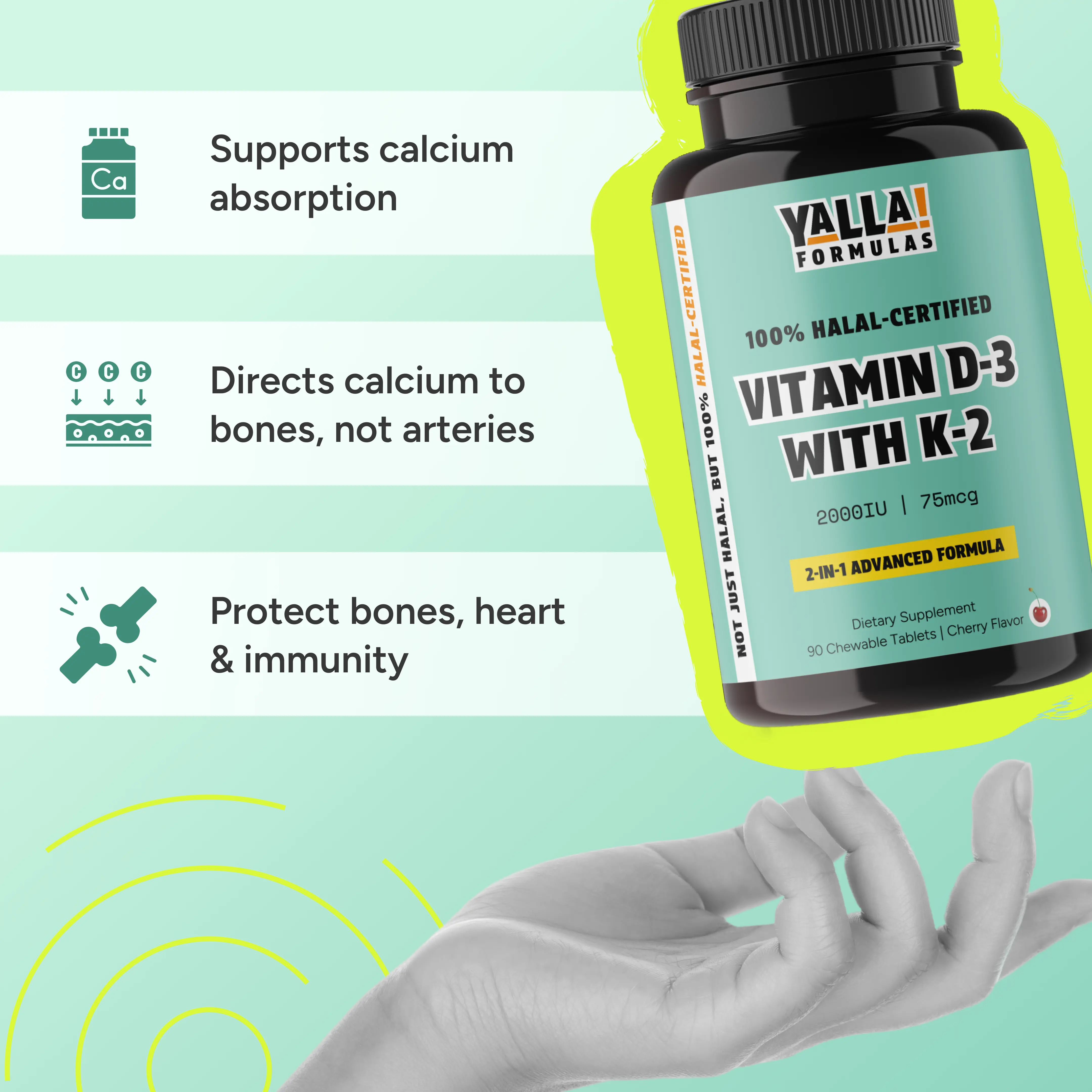 VITAMIN D3+K2: YOUR BONE & IMMUNITY SHIELD If you're not getting 20 minutes of direct sun daily (and most Muslims aren't), your bones are slowly weakening and your immune system is compromised.