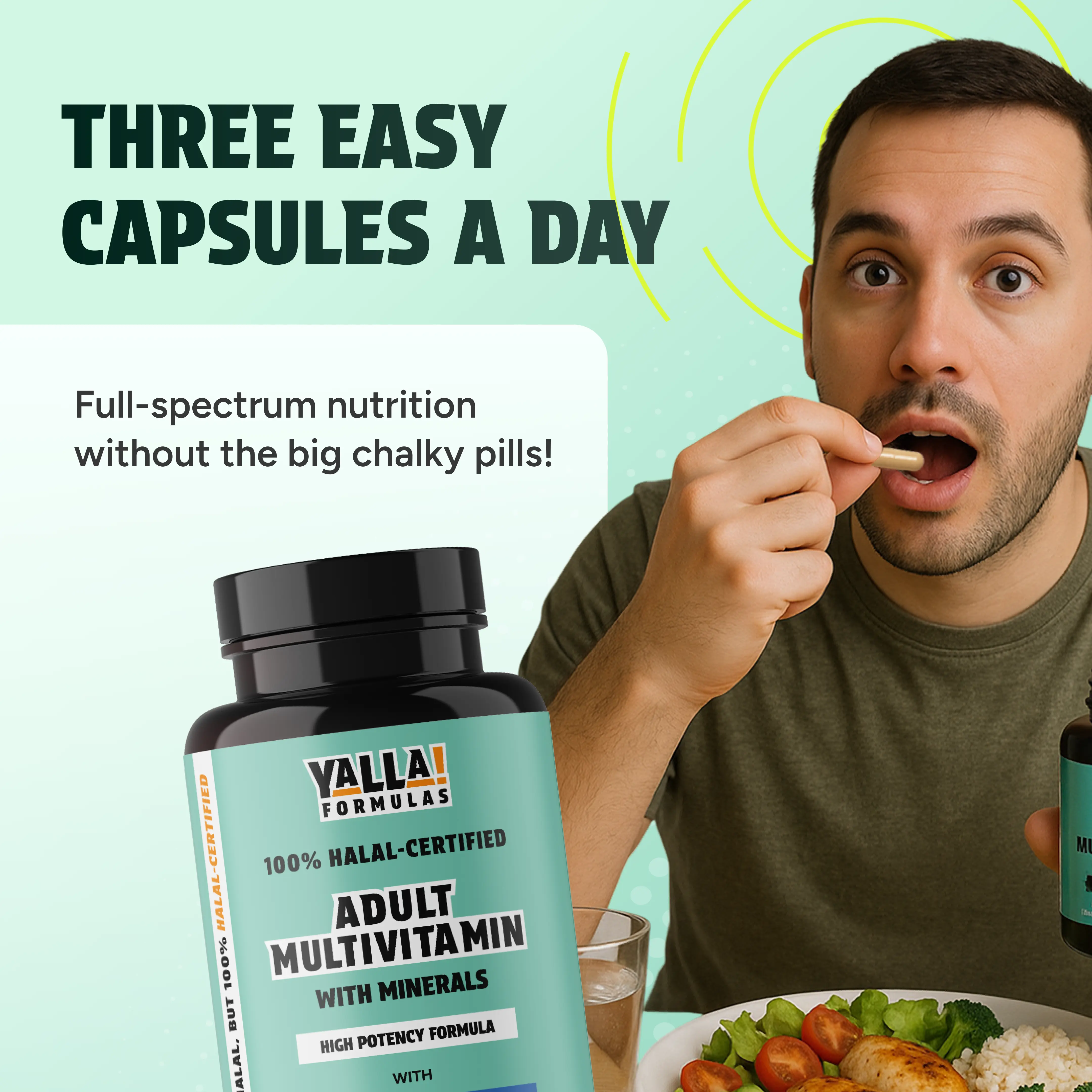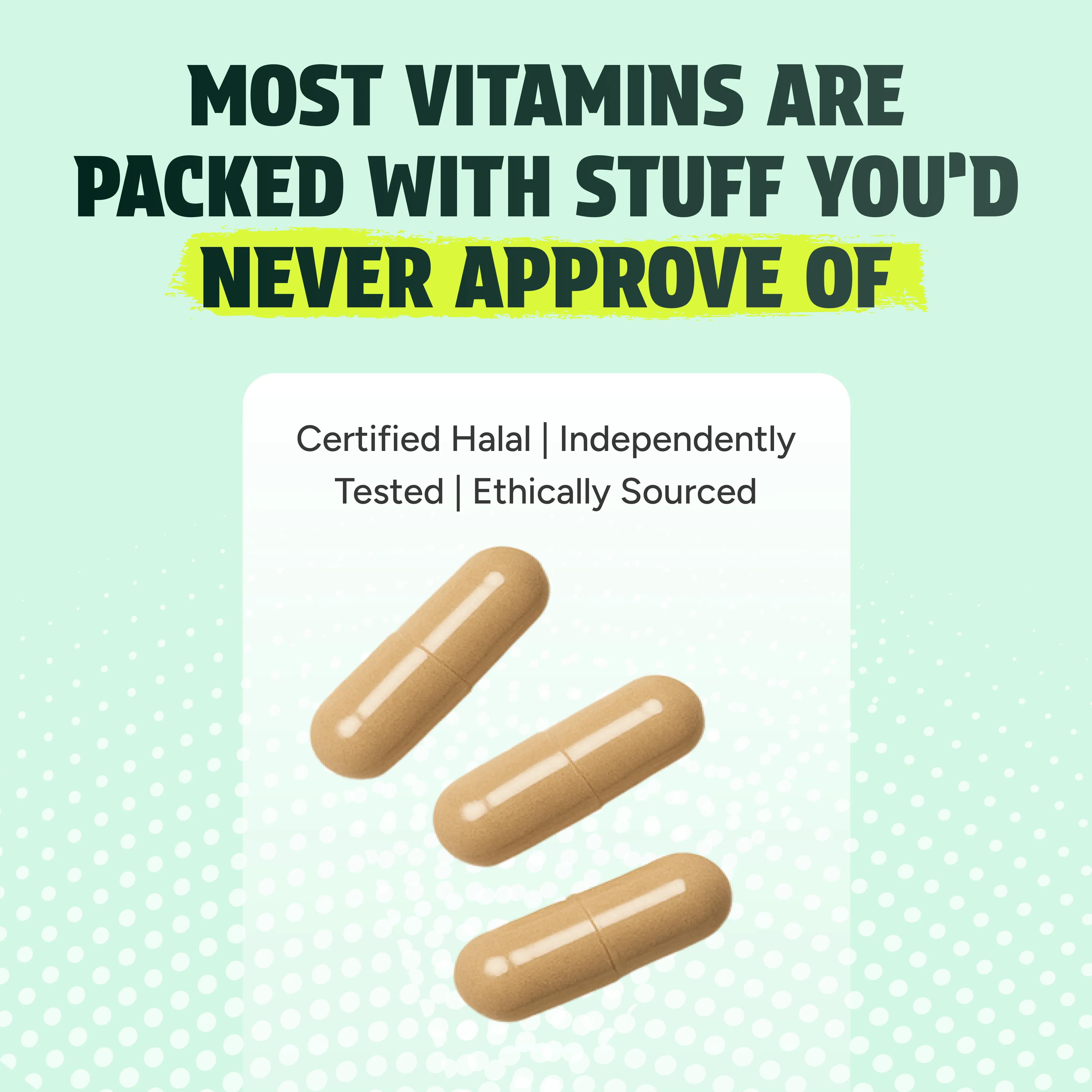 More importantly, over 75% of Muslims are deficient in Vitamin D due to limited sun exposure. We're including it free because we believe proper nutrition shouldn't be a luxury.