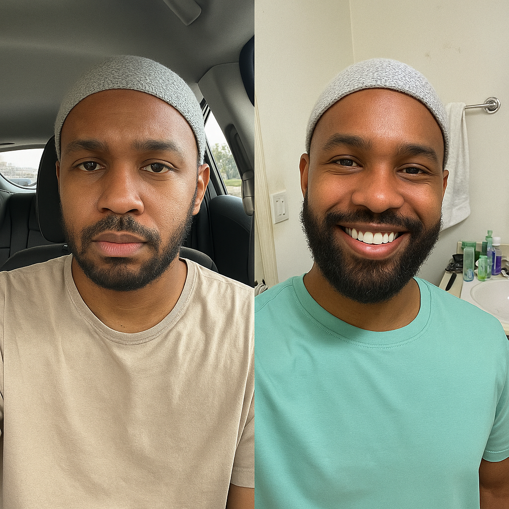 "I was losing hair and my beard was patchy. Three months later? My barber asked what I'm doing differently. My wife can't stop running her fingers through my hair."